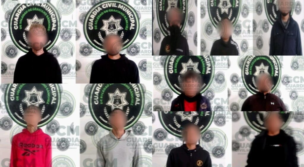 Derivado del trabajo preventivo y de cercanía con la ciudadanía, agentes de la Guardia Civil de Soledad de Graciano Sánchez detuvieron a 11 personas por presunto robo y despojo; entre ellos dos objetivos prioritarios con órdenes de aprehensión vigentes; dichos arrestos se realizaron en la colonia Quintas de la Hacienda Tercera Sección.